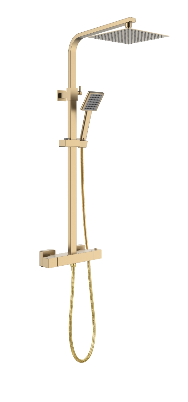 Pegasus Square Thermostatic Shower Valve & Rail Kit – BRUSHED BRASS