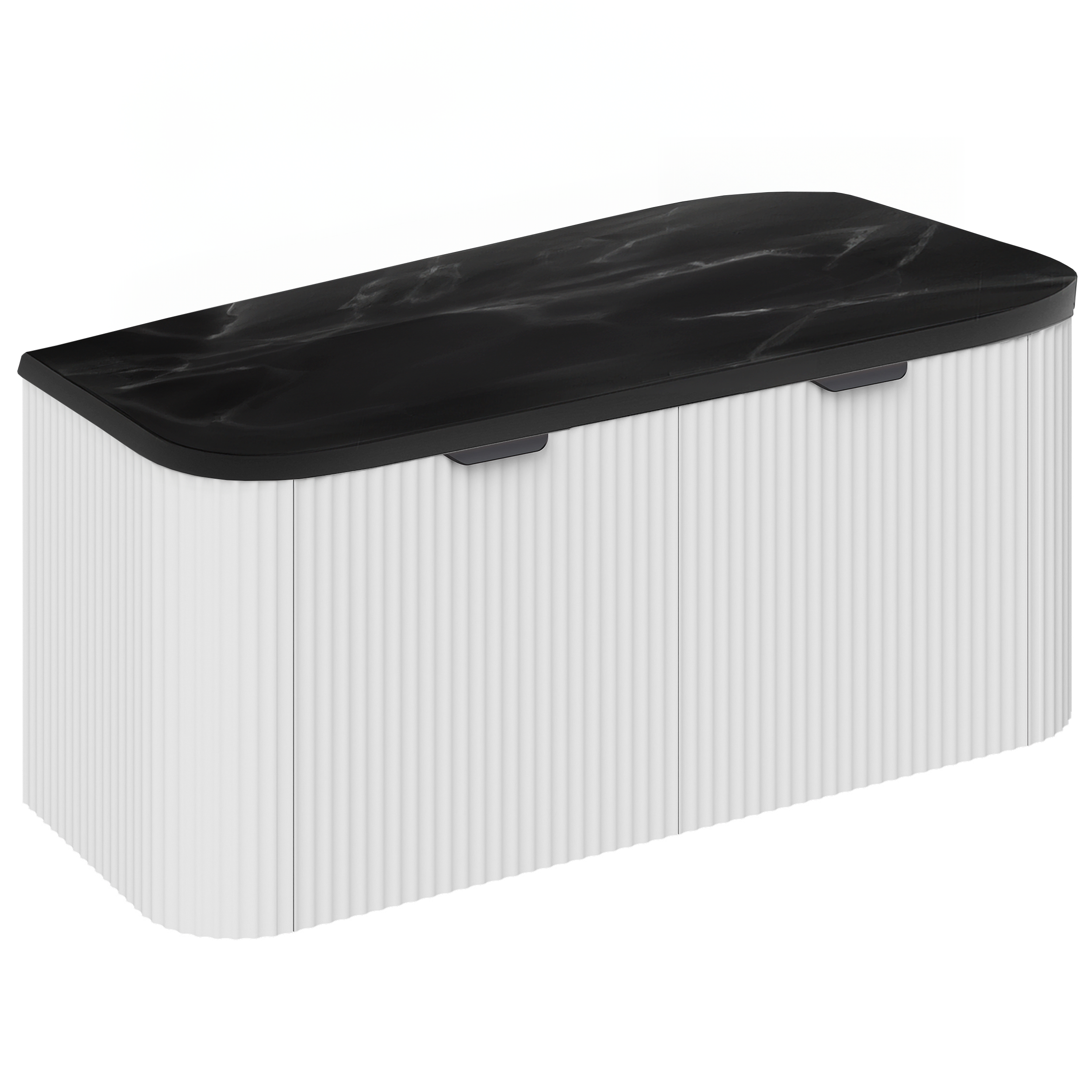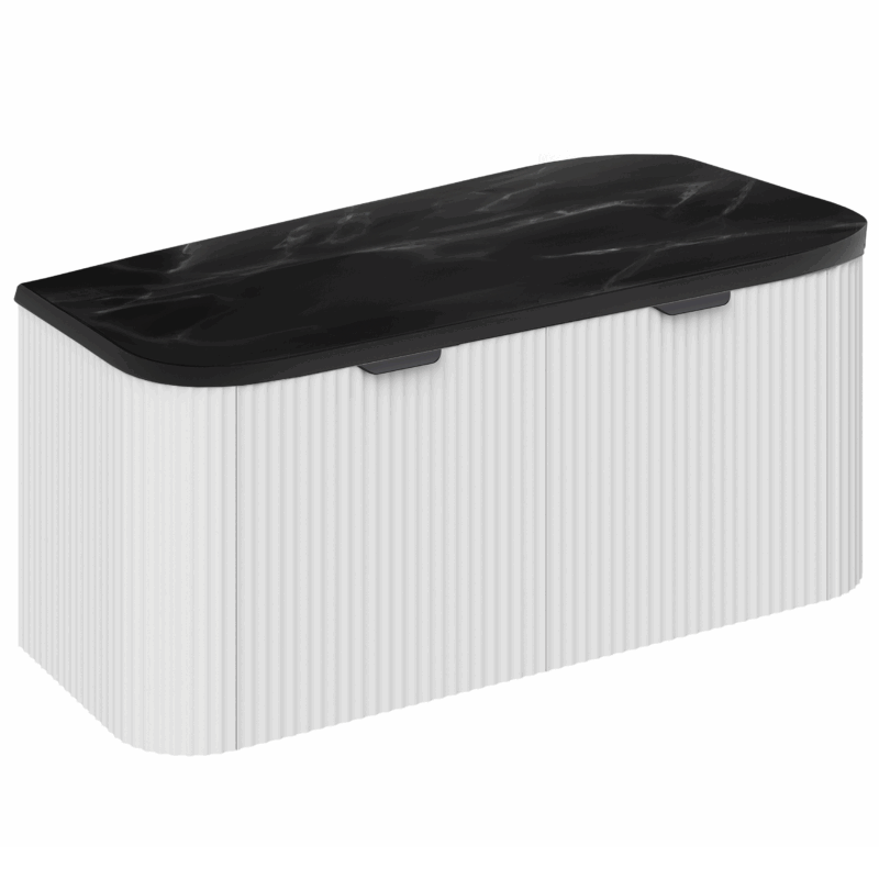 PVC Gloss White Fluted 1000mm Wall Hung Vanity Unit and Black Marble Top