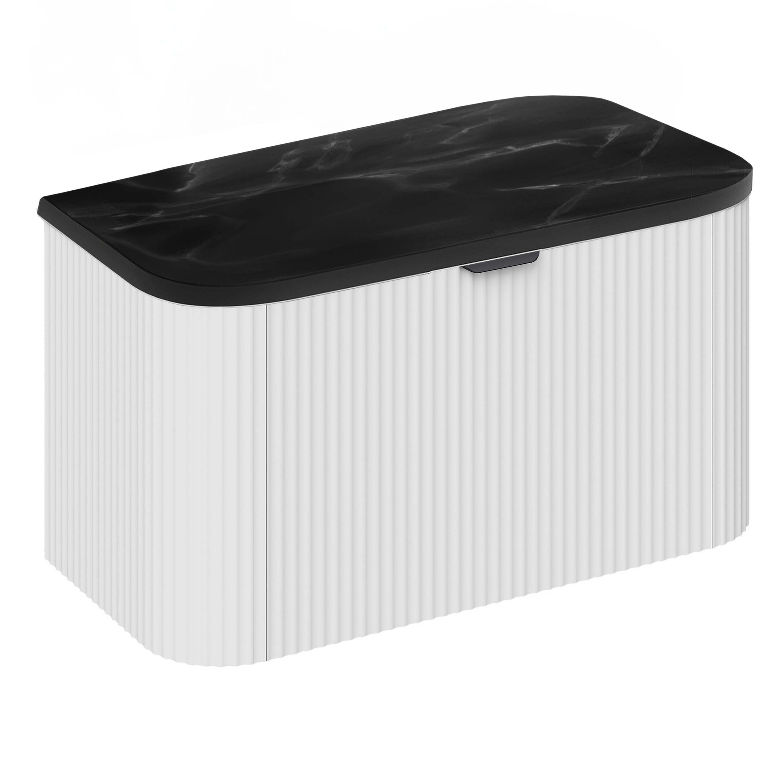 PVC Gloss White Fluted 800mm Wall Hung Vanity Unit and Black Marble Top